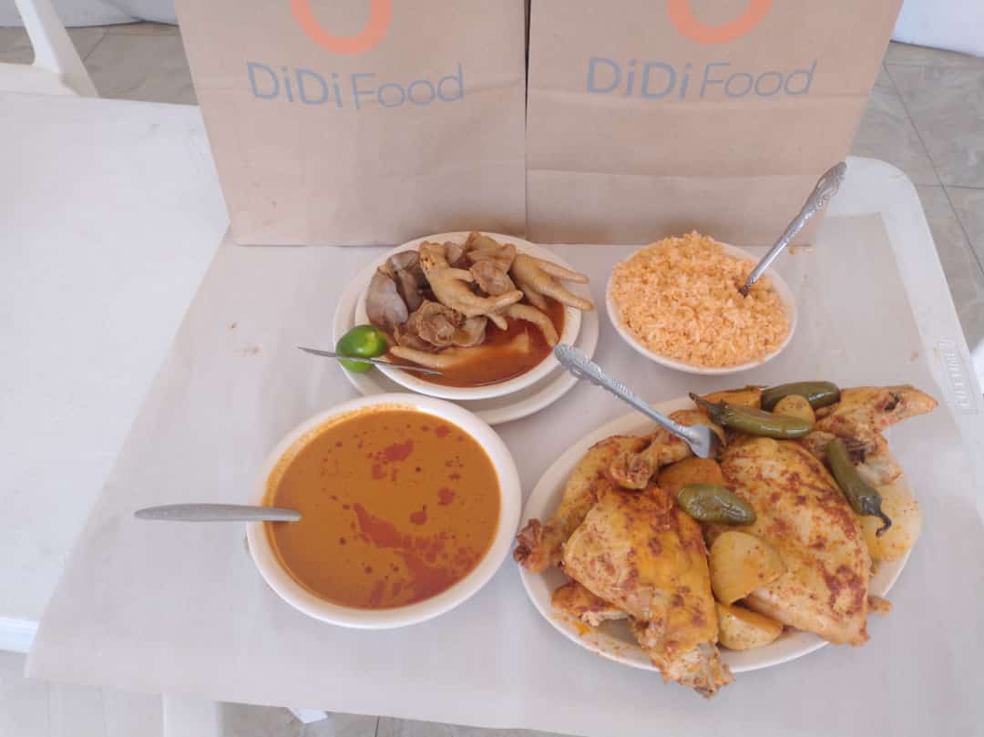 kilo de BIRRIA DE POLLO , PAPAS, CHILES, ARROZ, CEBOLLAS, TORTILLAS Y MOLE