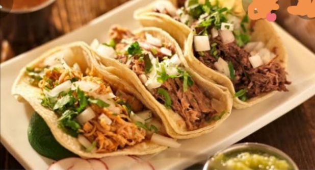 Cilantro, cebolla, salsas.(salsa roja ,picante ,cebolla blanca )