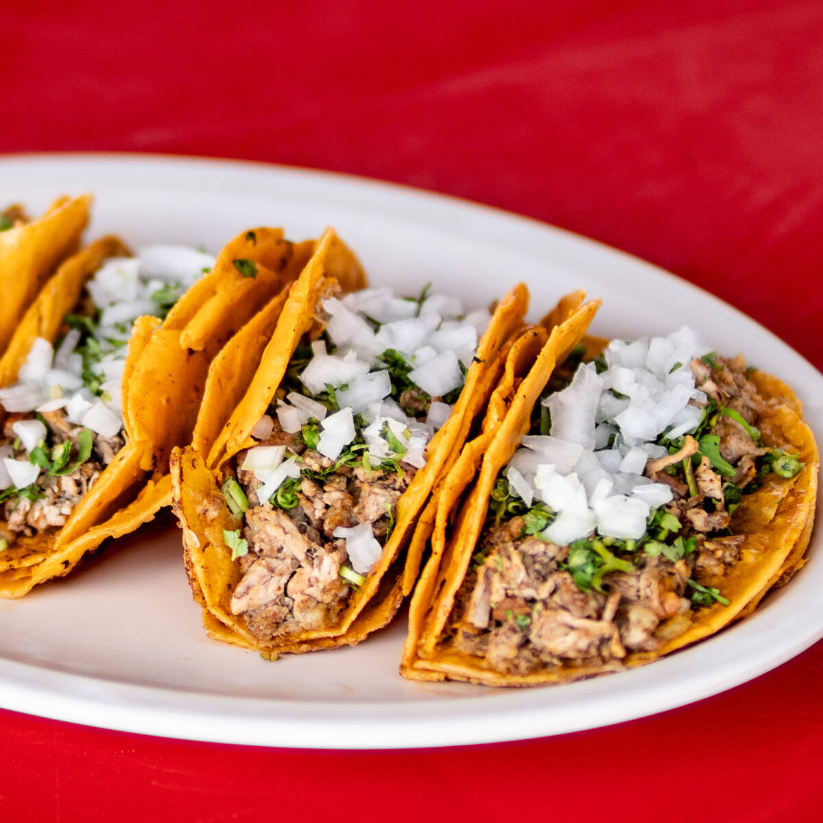 Taco de birria de res preparado con carne jugosa y suave, cocida lentamente en su propio jugo y especias tradicionales.