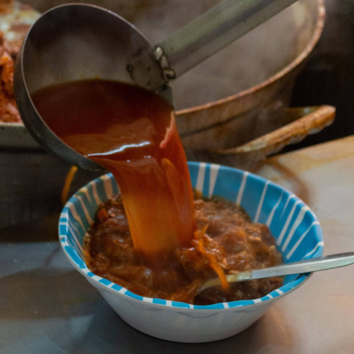 Plato de consomé carne de res con o sin garbanzos a elección del cliente.