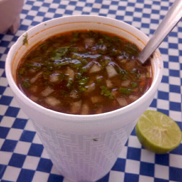 Acompañado de 2 litros de consomé, cebolla, cilantro, salsas y limones