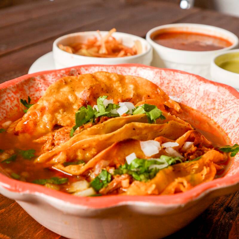 Una combinación irresistible de sabor y textura. tortilla dorada y crujiente cubierta con abundante queso gratinado que se funde sobre nuestra deliciosa birria estilo jalisco. acompáñalo con cebolla, cilantro, limones y salsas al gusto. ¡pruébalo y descubre por qué es uno de los favoritos!