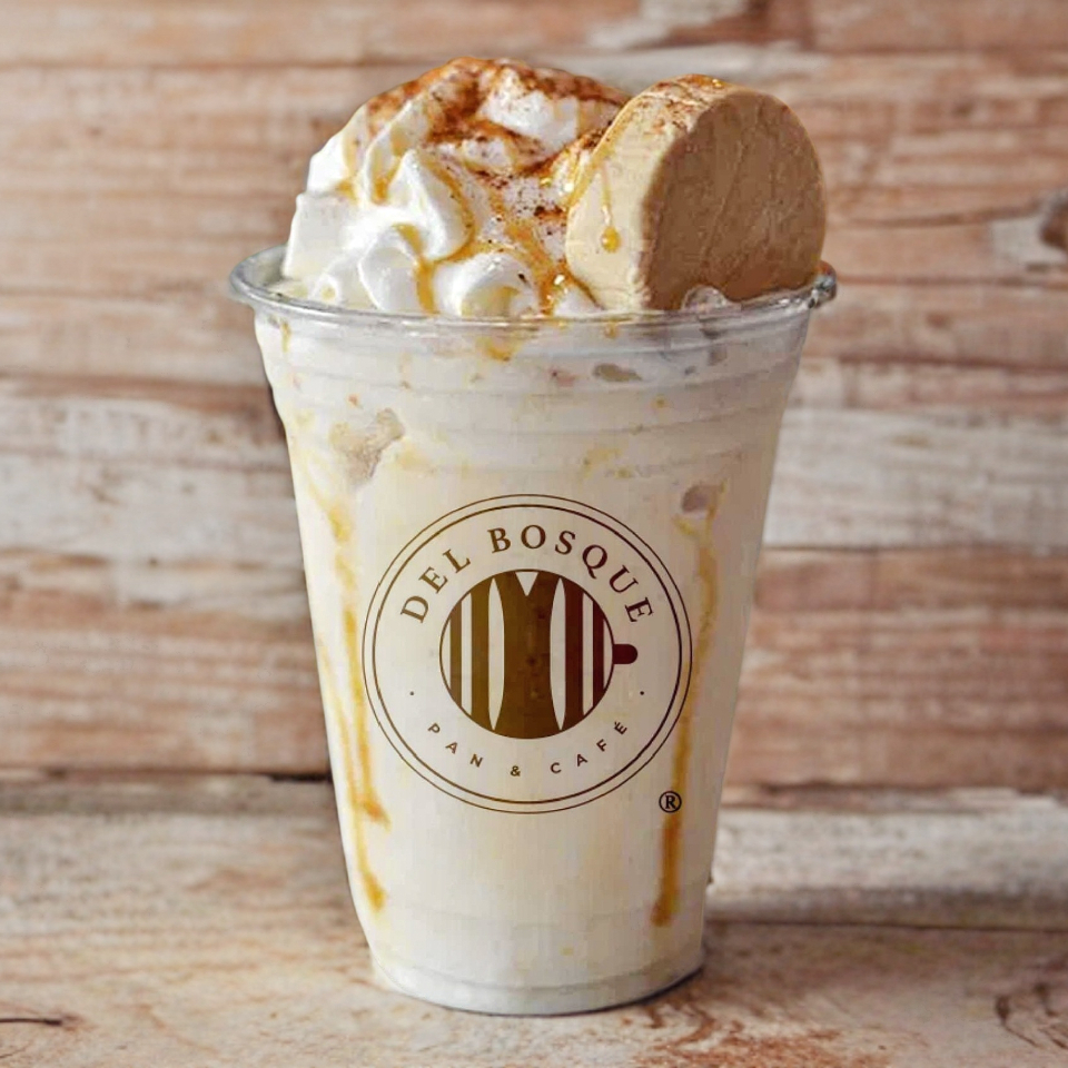 Deliciosa combinación de caramelo con hielos, decorado con crema batida y espiral de caramelo.