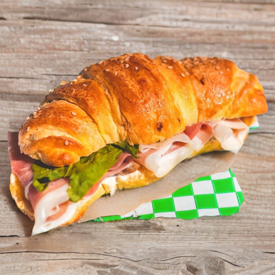 Pan de masa madre con huevo y jamón de pavo, queso manchego y aderezo de chipotle.