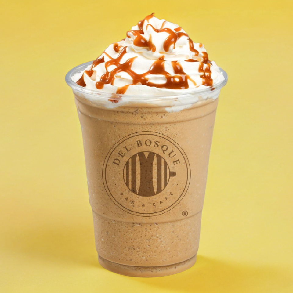 Deliciosa combinación de caramelo con hielos, decorado con crema batida y espiral de caramelo.