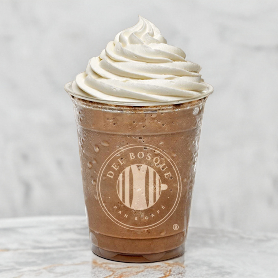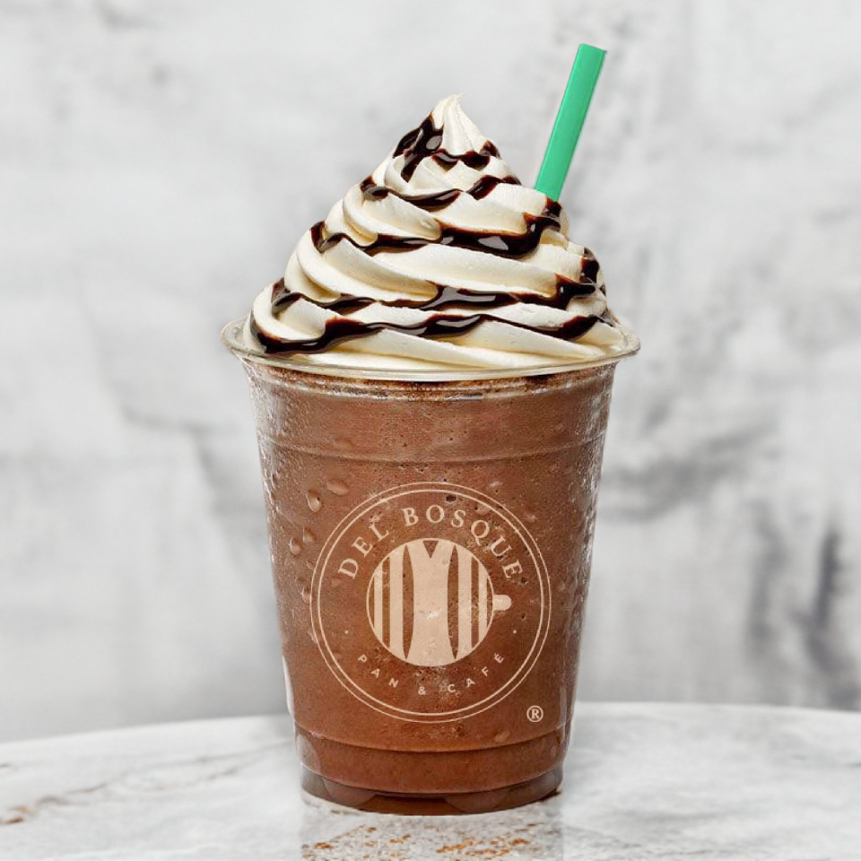 Mezcla de Chocolate obscuro y shot de espresso, con trocitos de chocolate. Decorado con crema batida.