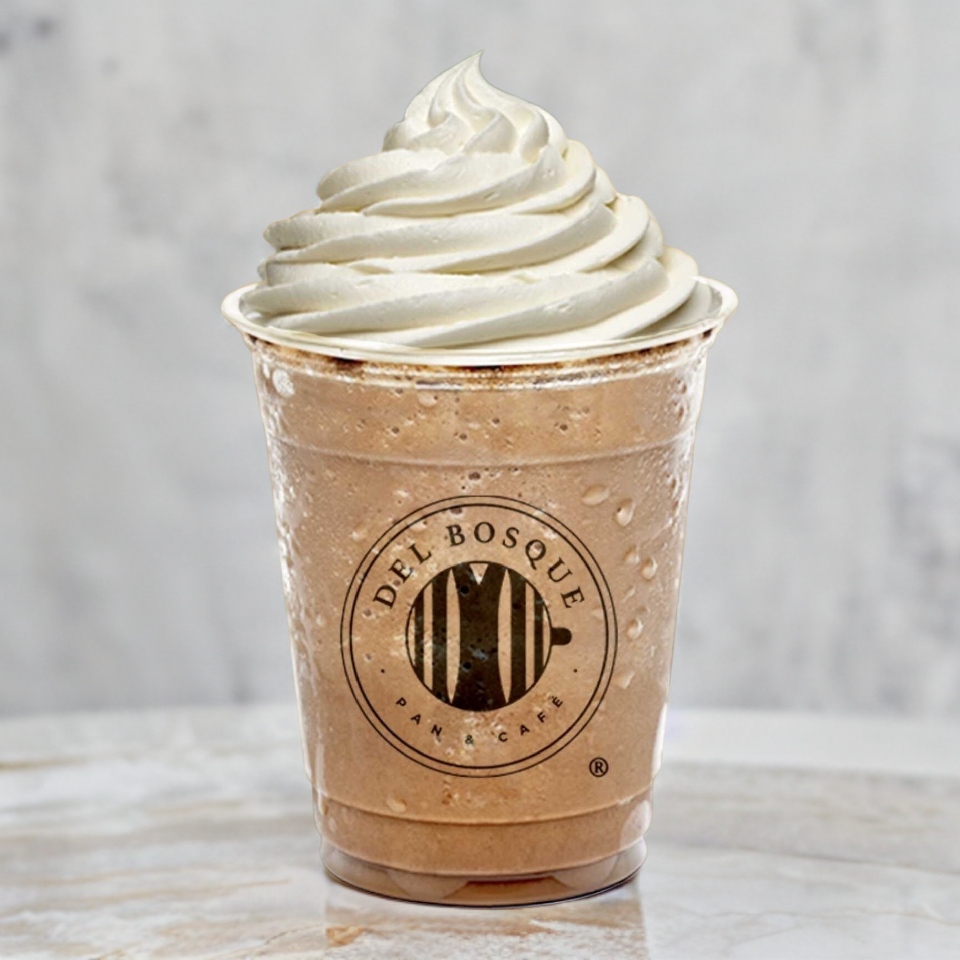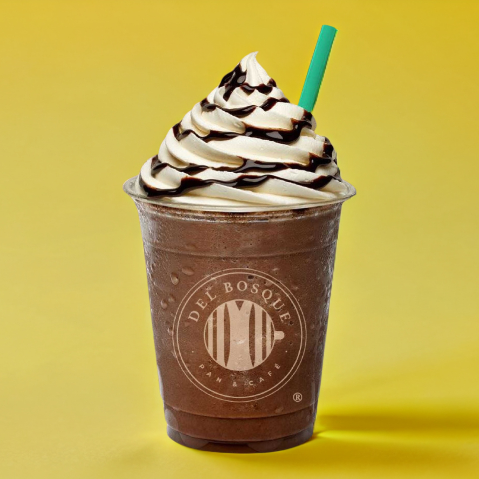 Un clásico hecho frappé. Decorado con espiral de chocolate.