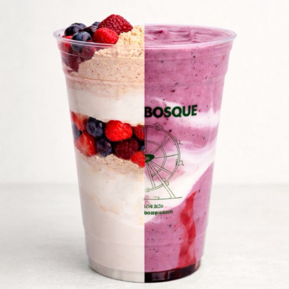 Frutos rojos, yogurt griego, proteína vegetal Habits sabor vainilla, leche vegetal