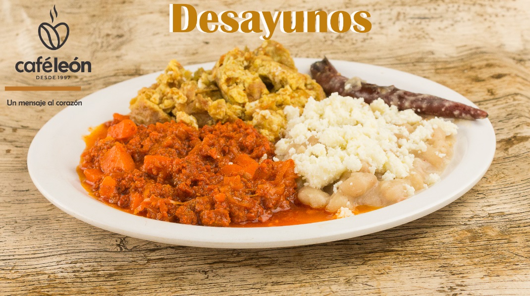 Puede ser de chilaquiles rojos, huevo en salsa y huevo con jamón o salchicha (puede variar este ultimo platillo).