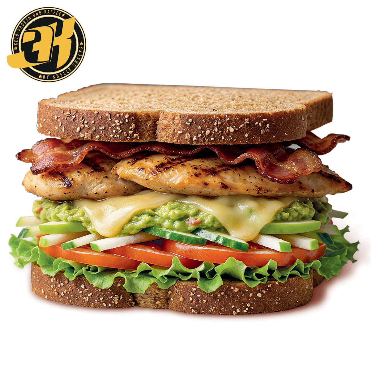 Club sandwich en pan integral multigrano Oroweat, relleno de pollo dorado a la parrilla, tocino crujiente, guacamole cremoso y queso fundido, equilibrado con lechuga italiana fresca, jitomate, pepino y un toque de manzana. Potente, jugoso y perfectamente balanceado entre lo fit y lo indulgente 🐆🔥 Ideal para una comida completa y llena de energía.