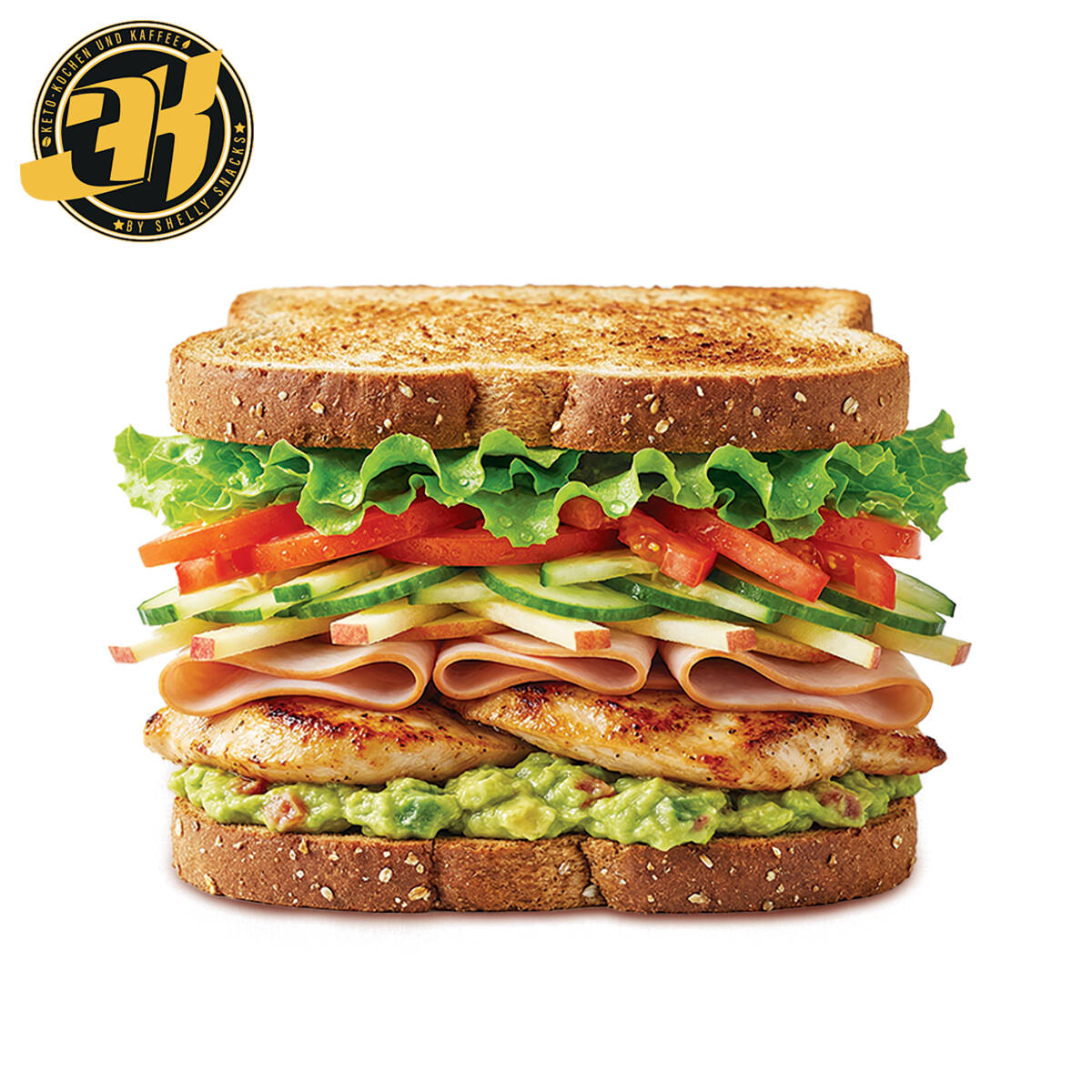 Pan integral multigrano relleno con pollo jugoso y jamón de pierna de pavo, acompañados de lechuga italiana fresca, jitomate, pepino y un toque dulce de manzana, todo equilibrado con guacamole ligero que une cada mordida. Una opción completa, fresca y poderosa para recargar energía sin complicaciones. 🔥💪 👉 Ideal para cuando el hambre viene en modo doble.