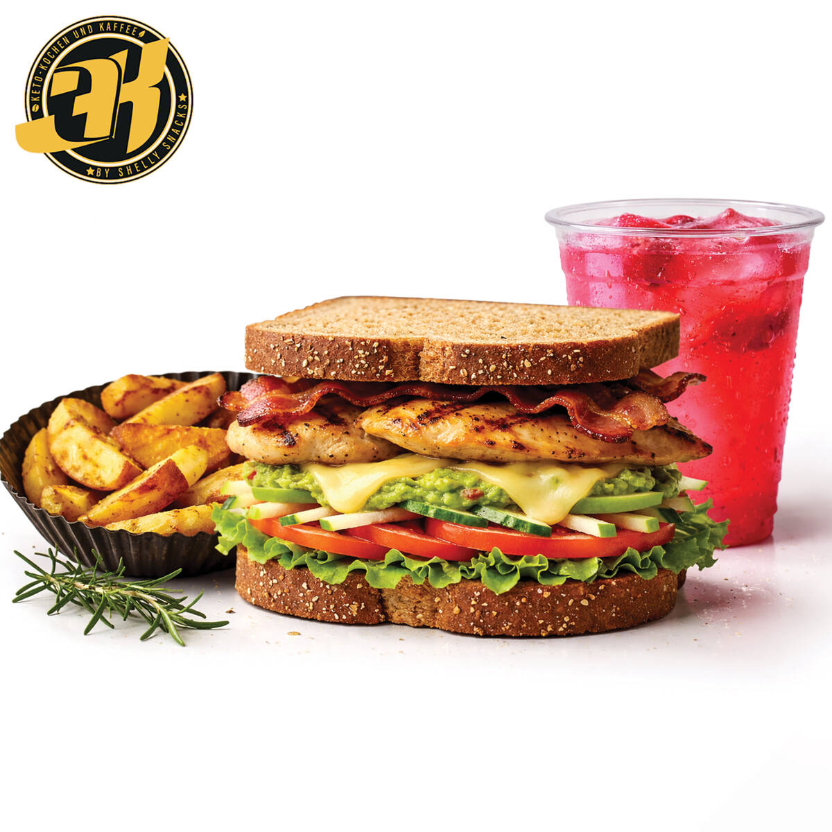 Nuestro Sandwich Black Panther combina pollo a la plancha jugoso, tocino crujiente, queso fundido y aguacate cremoso, servido en pan integral con vegetales frescos. Se acompaña de papas doradas en freidora de aire, crujientes y llenas de sabor, más agua de sabor natural de 16 oz para refrescar cada bocado. Un combo completo, poderoso y totalmente irresistible.