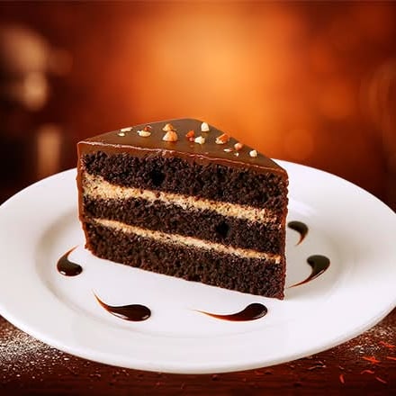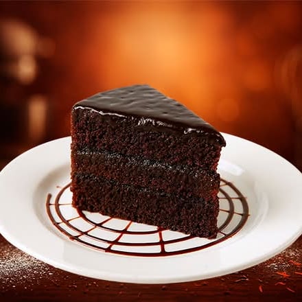Rebanada de Pastel de chocolate esponjoso y húmedo, con intenso sabor a cacao.
