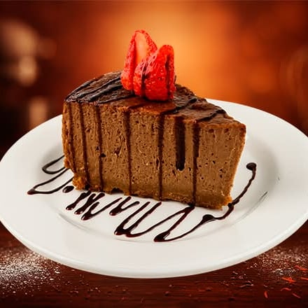 Rebanada de Cheesecake de chocolate cremoso con intenso sabor a cacao y base de galleta.