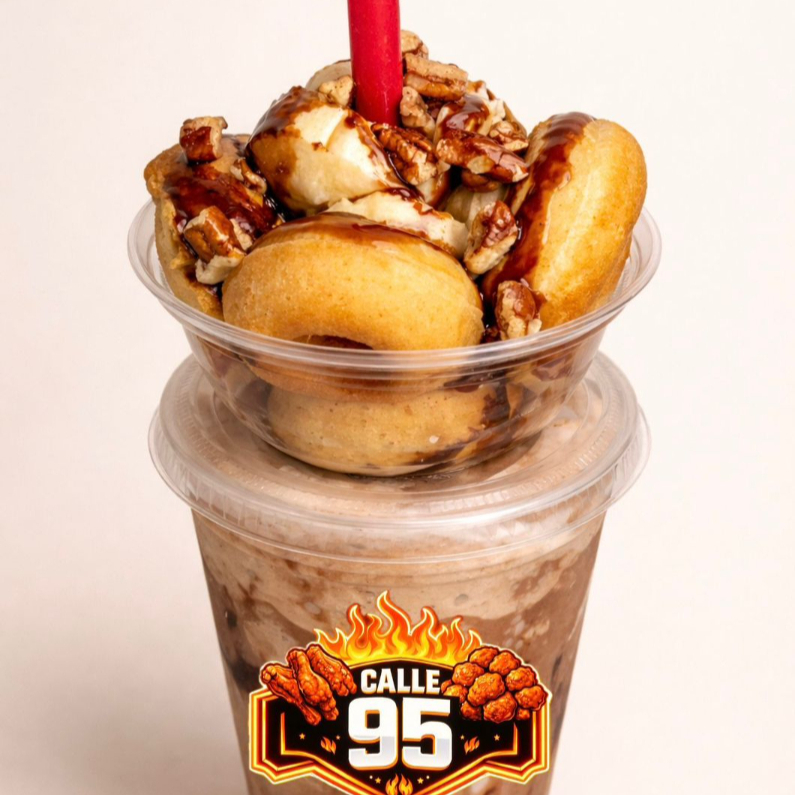 Frappé FRESA con 10 donas mini con platano ,nuez y chocolate herseys