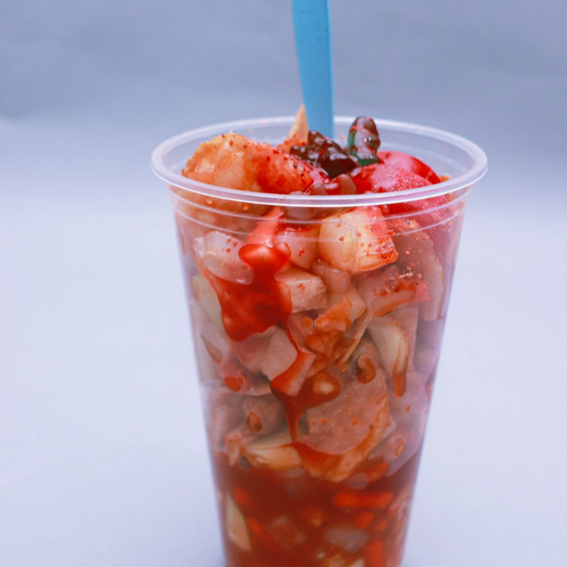 Clamato,Chamoy,jicama,pepino,salsa de botella,tajin,salsa inglesa, Gomitas ( se envia separado)