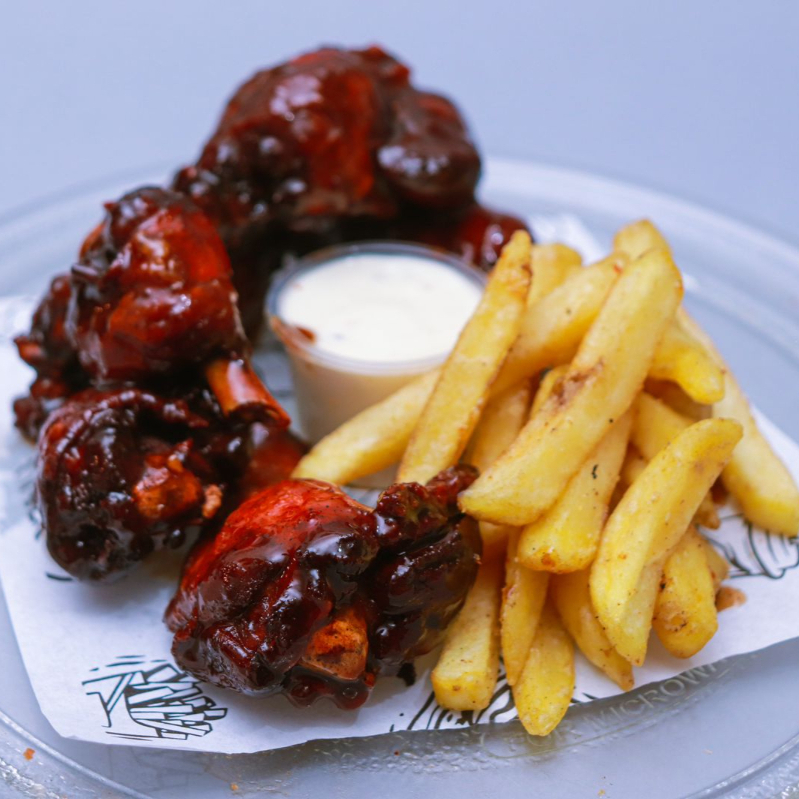 6 Alitas BBQ + 100g Papas Francesas