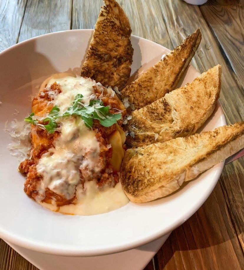 Hojas de lasaña, acompañadas con bechamel y bolognesa.