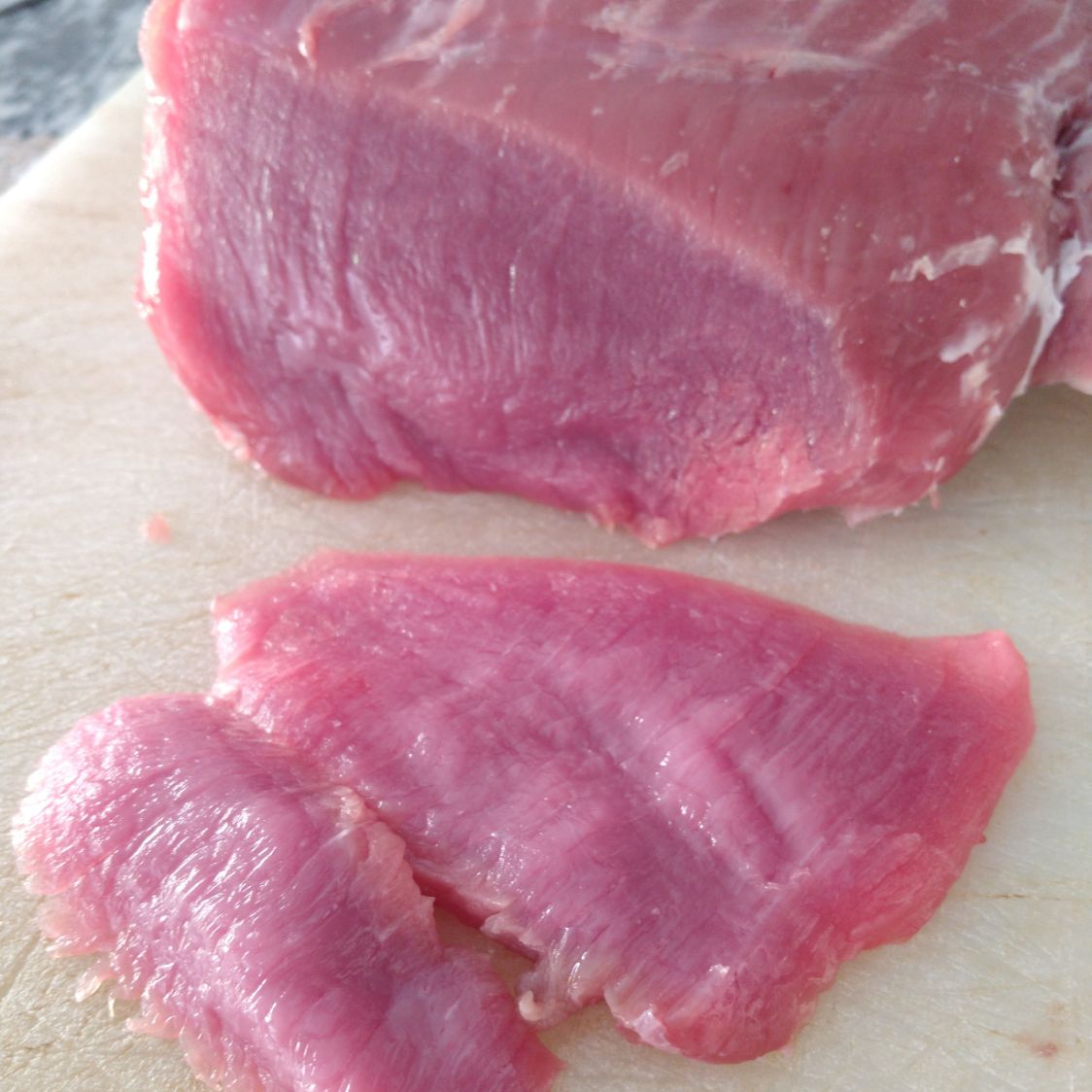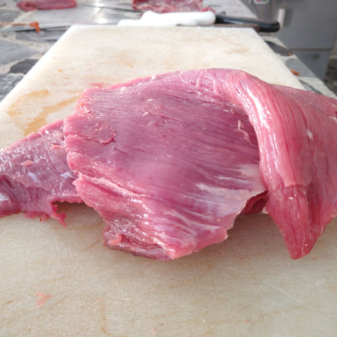 Limpio, sin pellejos, sin hueso se evita poner el tendón de los extremos.