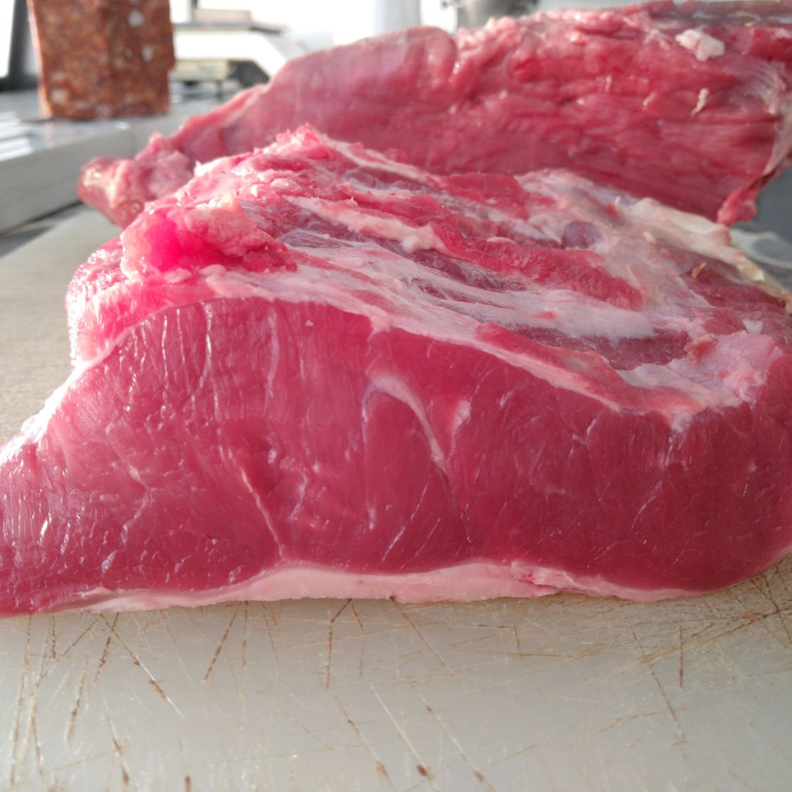 Chuleta con filete de res, puede ir un poco congelada para realizar mejor corte en la cierra; se elimina el exceso de grasa.
