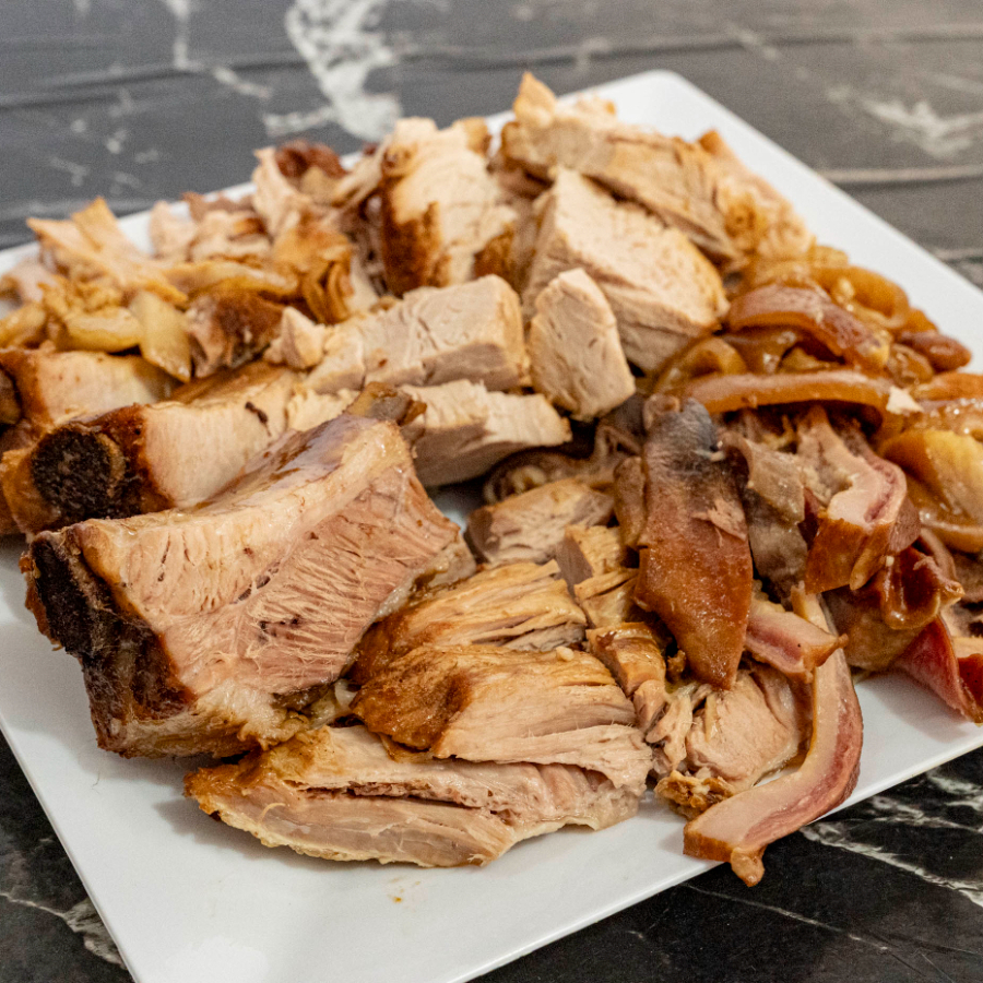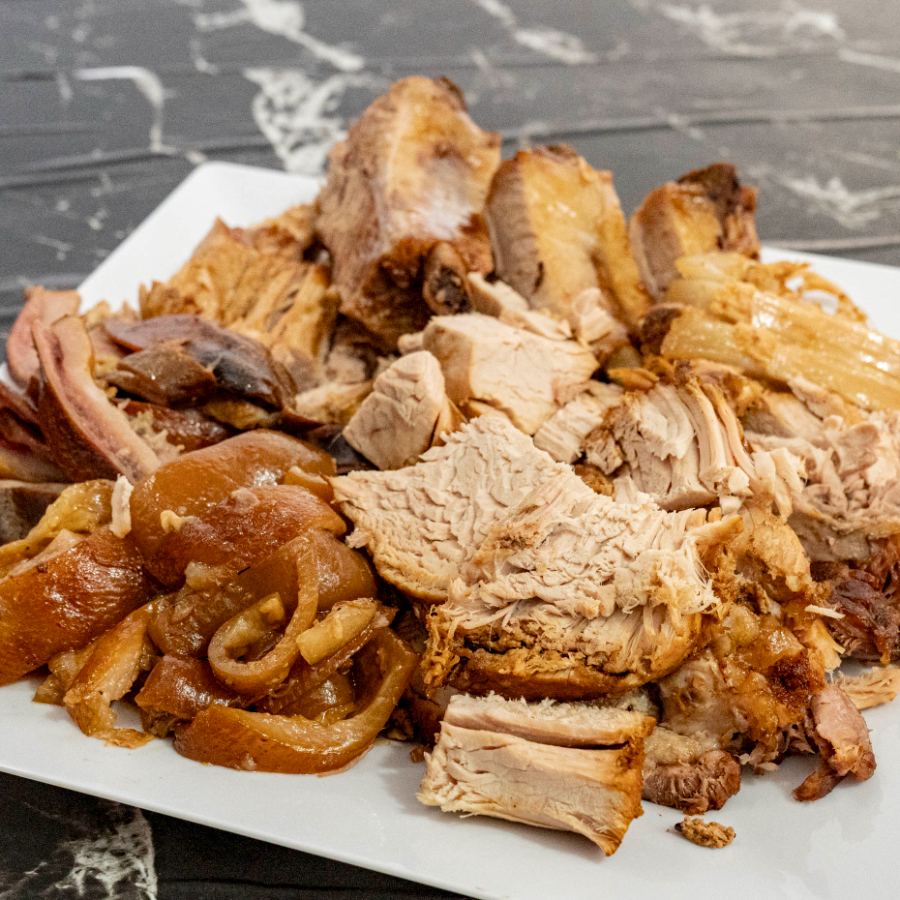 Un Kilo de carnitas surtidas incluye 3 guarniciónes (salsa roja toreada,salsa verde guacamole, salsa clásica jitomate) 1/2 tortillas de maíz.
