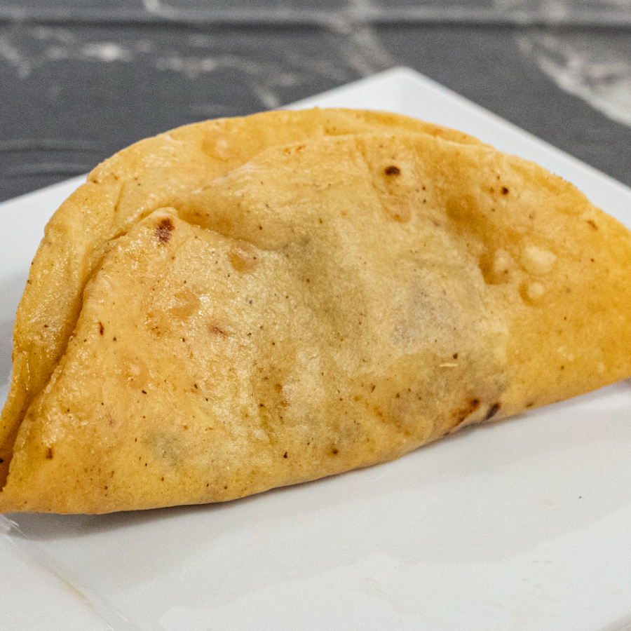 1 pza de gordita rellena de carnitas preparada con cebolla y cilantro incluye 2 guarniciones ( salsa verde guacamole y salsa roja toreada )