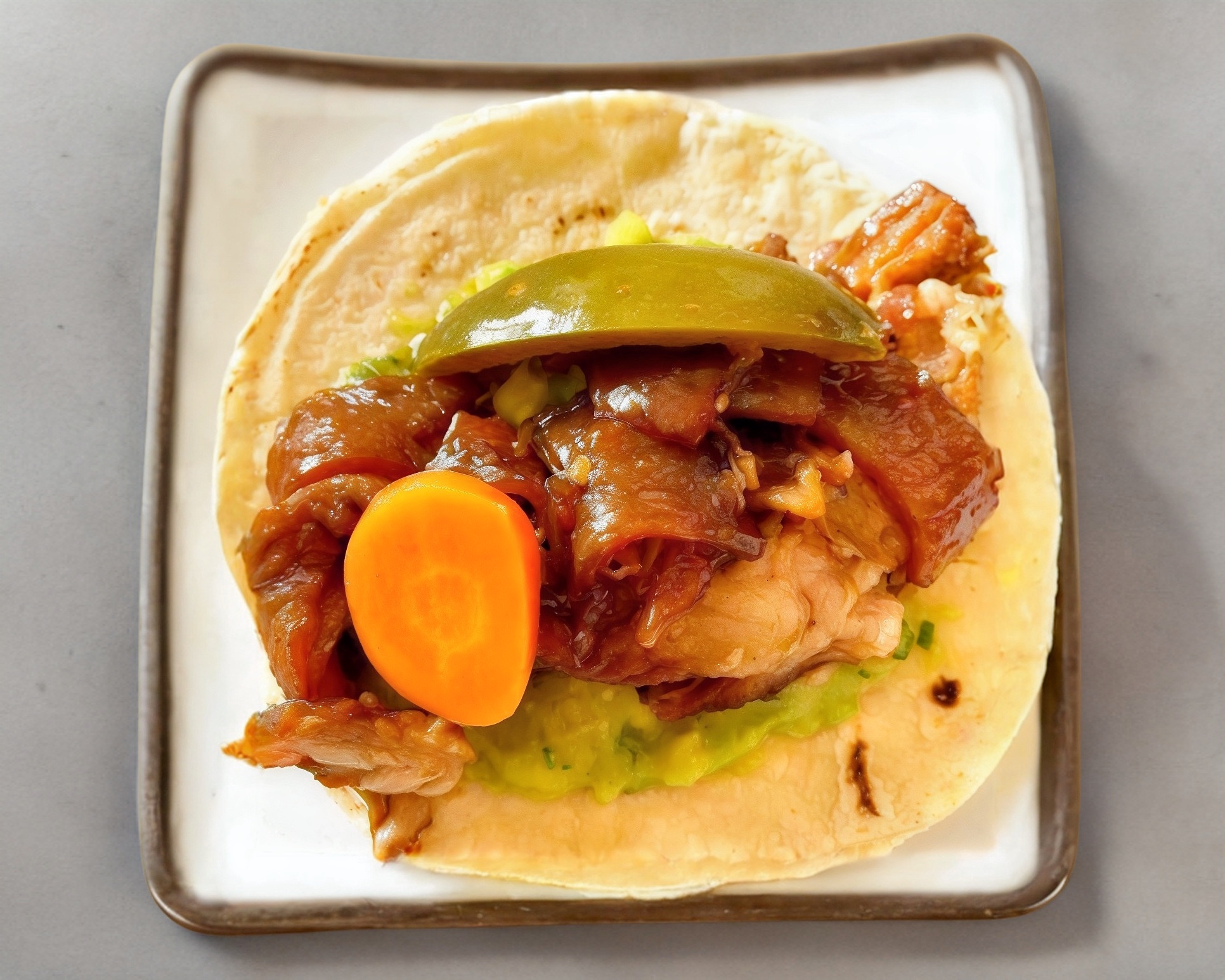 1/4 de carnitas surtidas incluye 3 guarniciones (salsa roja toreada,salsa guacamole y clásica jitomate) 1/4 de tortillas de maíz.