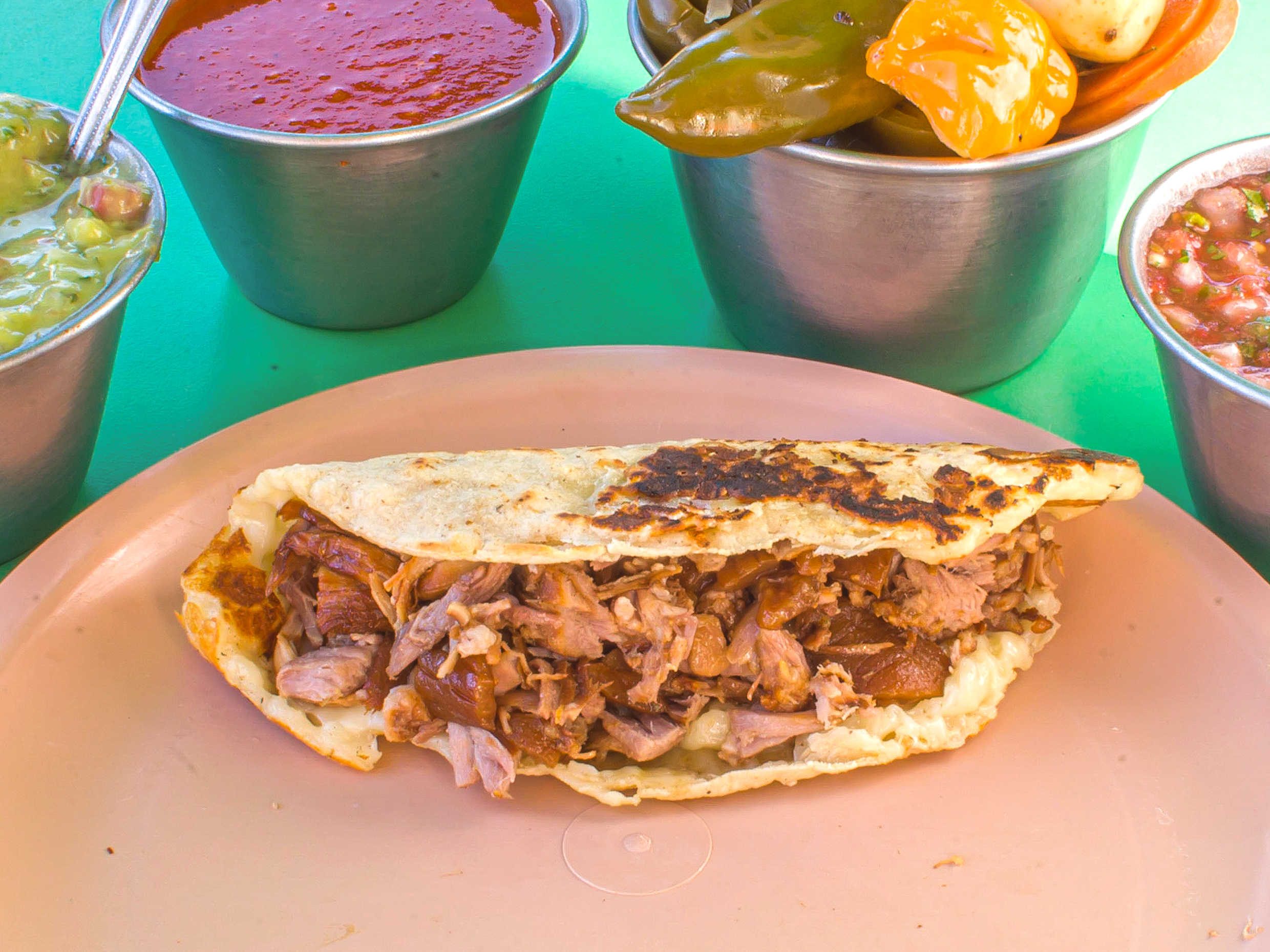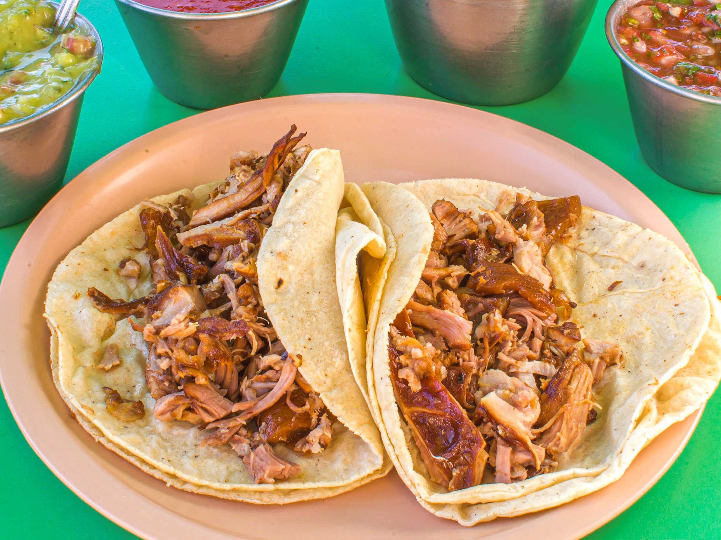 Taco de Carnitas ( 1 pieza), salsas a elegir por el cliente.