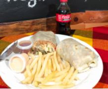 Baguette de pollo o arrachera con verdura y aderezo de la casa acompañado de una guarnición de tu preferencia.