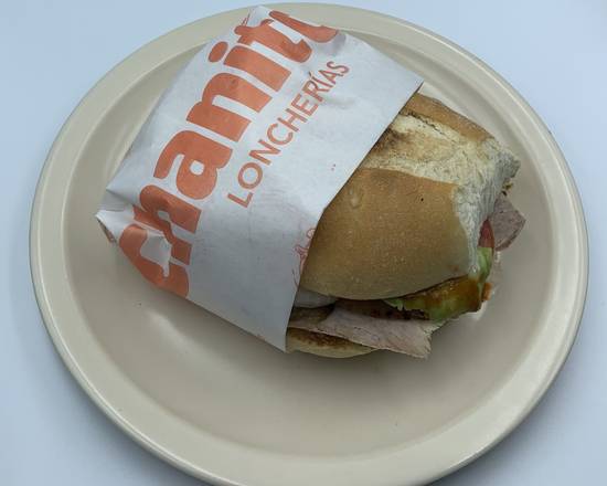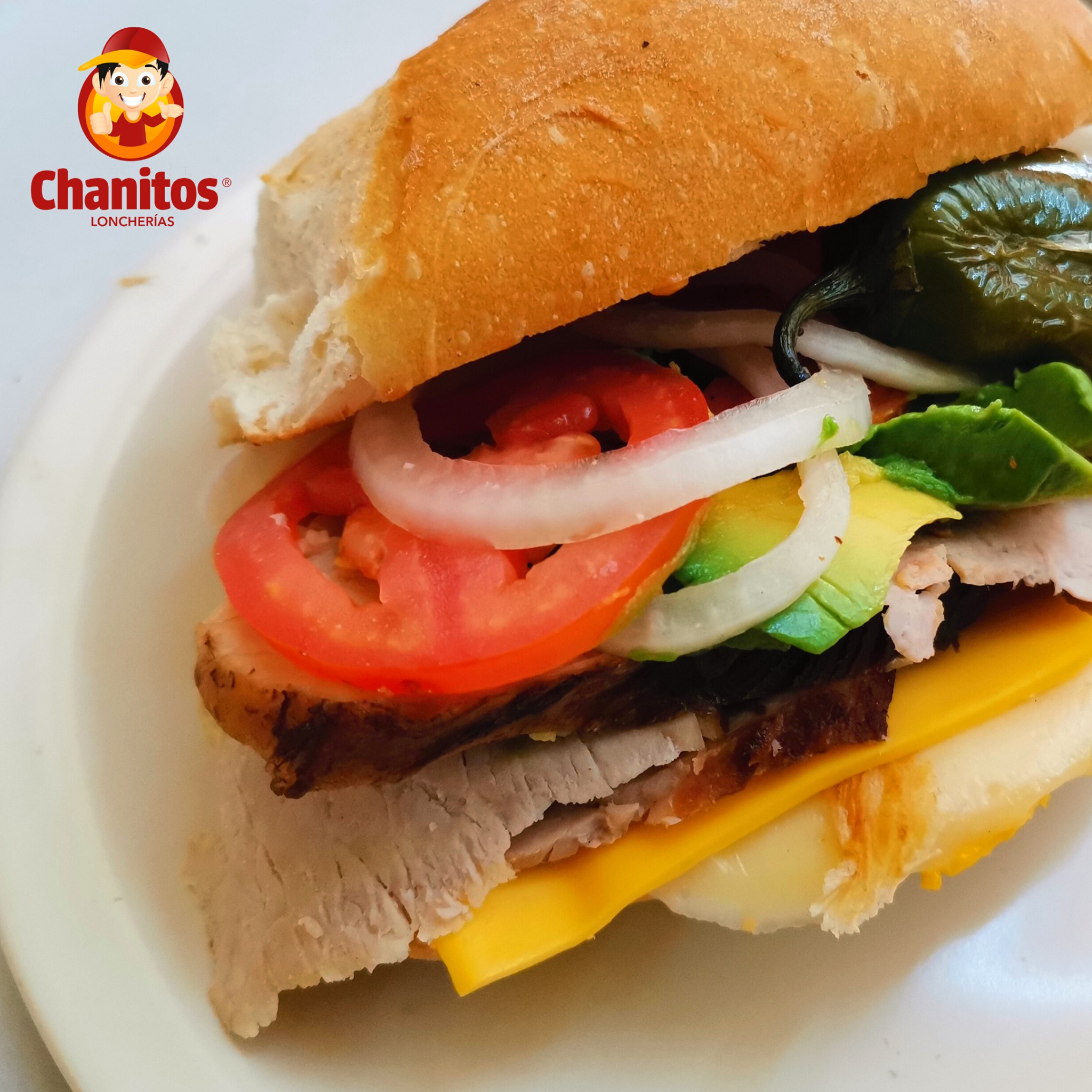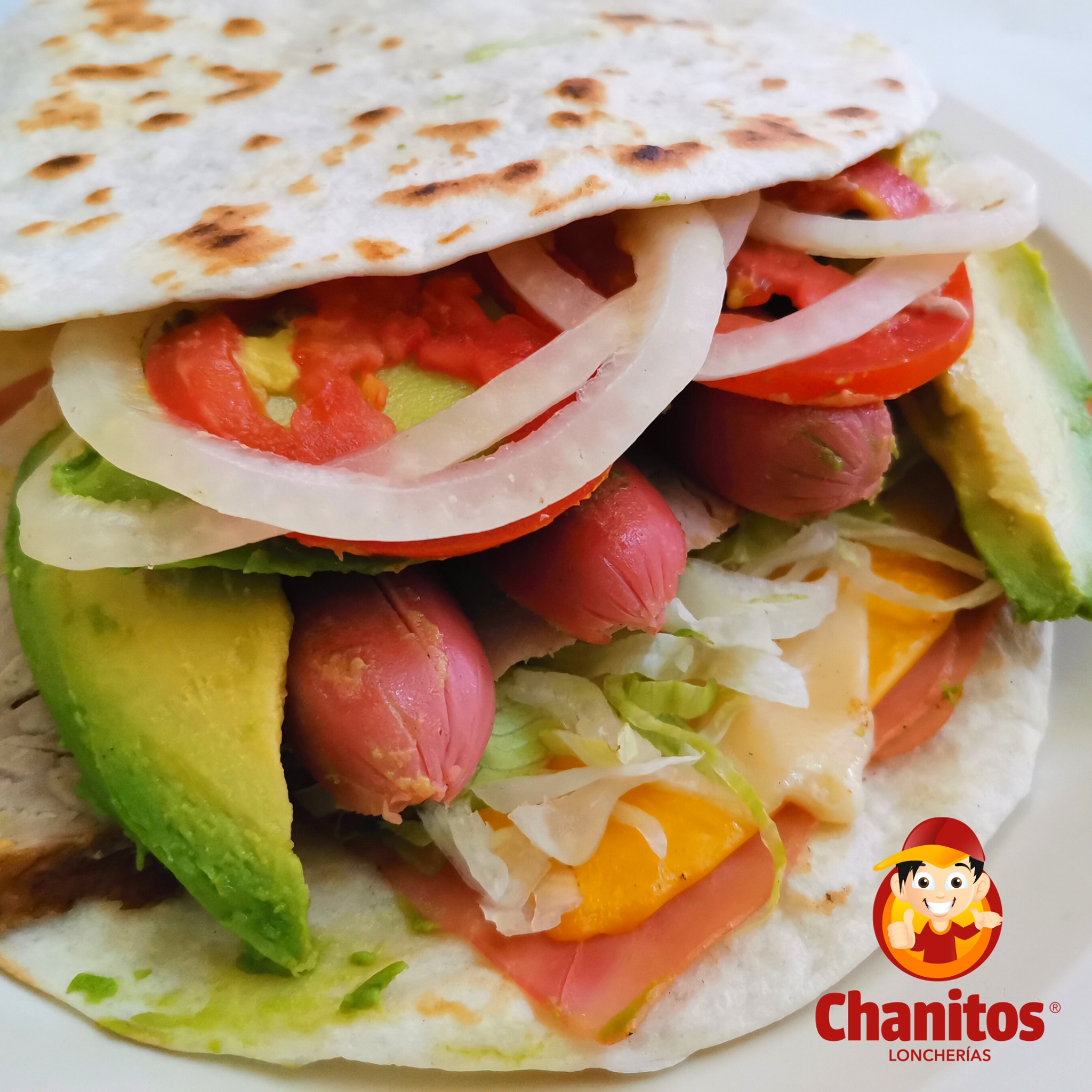 Jamón, carnitas, queso blanco y amarillo. Incluyen lechuga, jitomate, cebolla, aguacate, crema. Aderezos; catsup, mostaza y chimichurri.