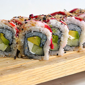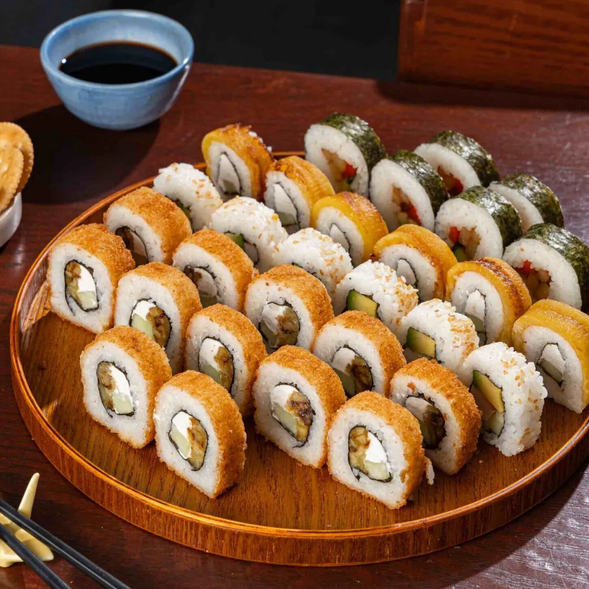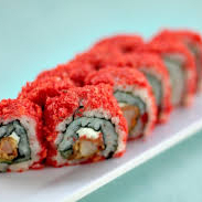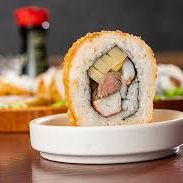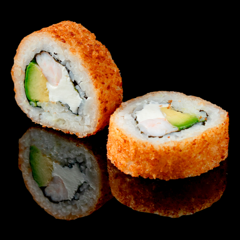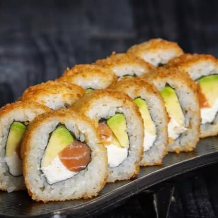 Rollo frito con tu elección de proteína (camarón, surimi o vegetariano) por dentro, con salsa chipotle sobre encima.