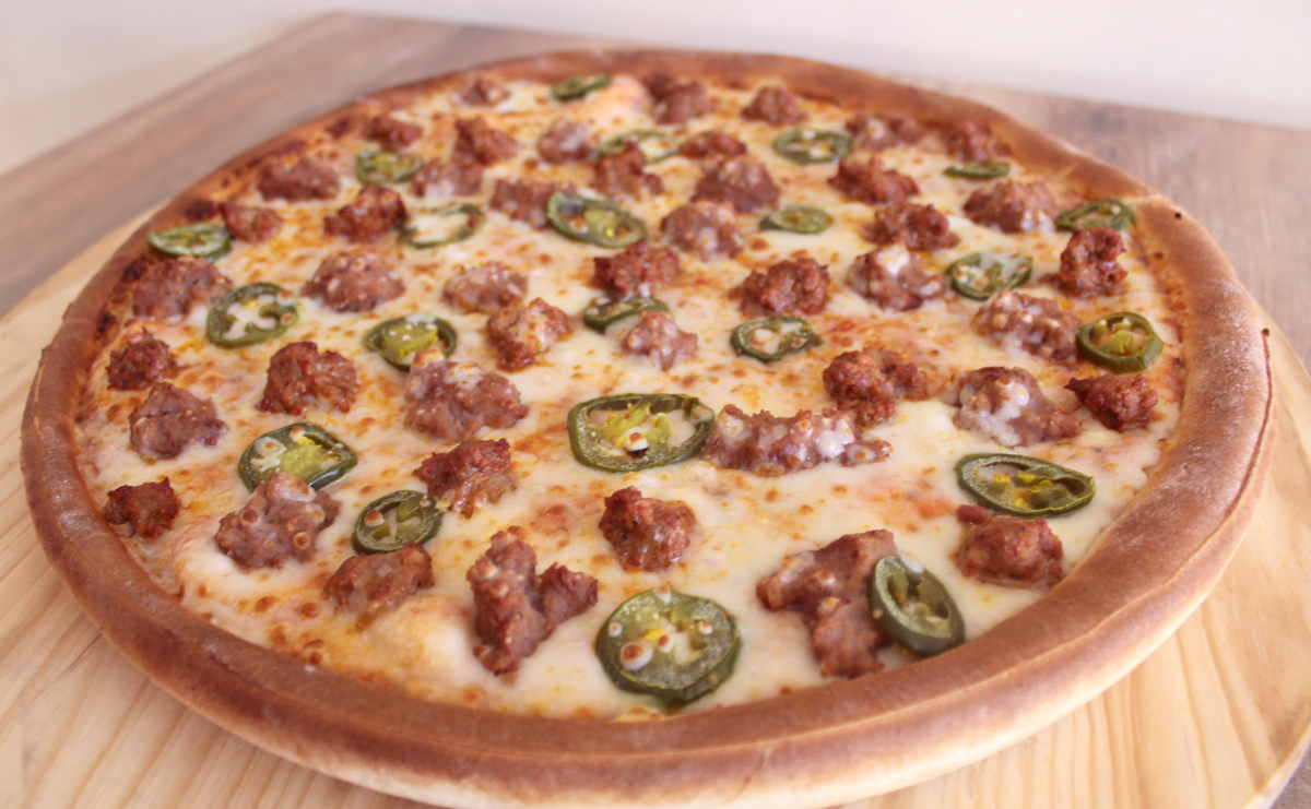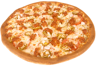 Jamón, jitomate, cebolla, jalapeño, chorizo y extra queso.