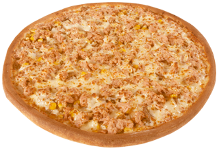 Atún, granos de elote, champiñones y extra queso.