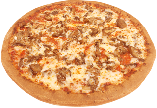 Salchicha italiana, pepperoni, pimiento verde, cebolla, champiñones y extra queso.