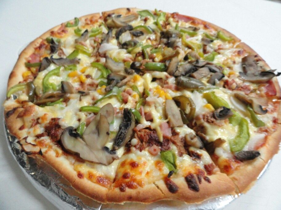 Pizza con Champiñon Cebolla Pimiento Morron y Elote