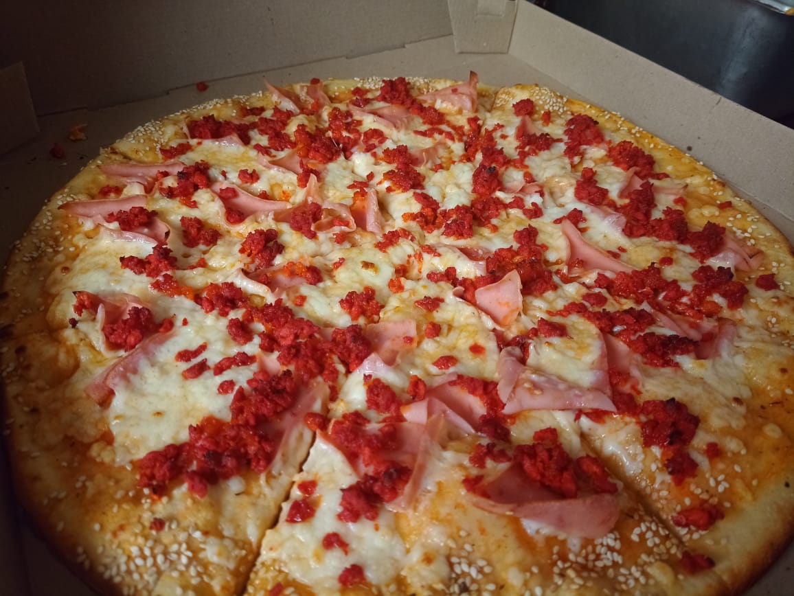 Pizza con Jamon Salchicha Tocino Chorizo y Peperoni