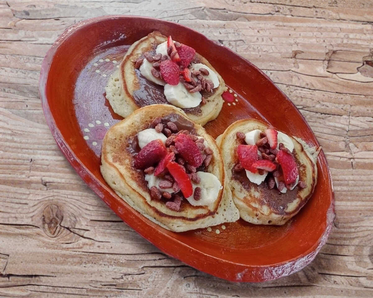 Hot-cakes esponjosito untada tu crema favorita, fruta y cereal a elegir aprox 12 cm, 1PZ