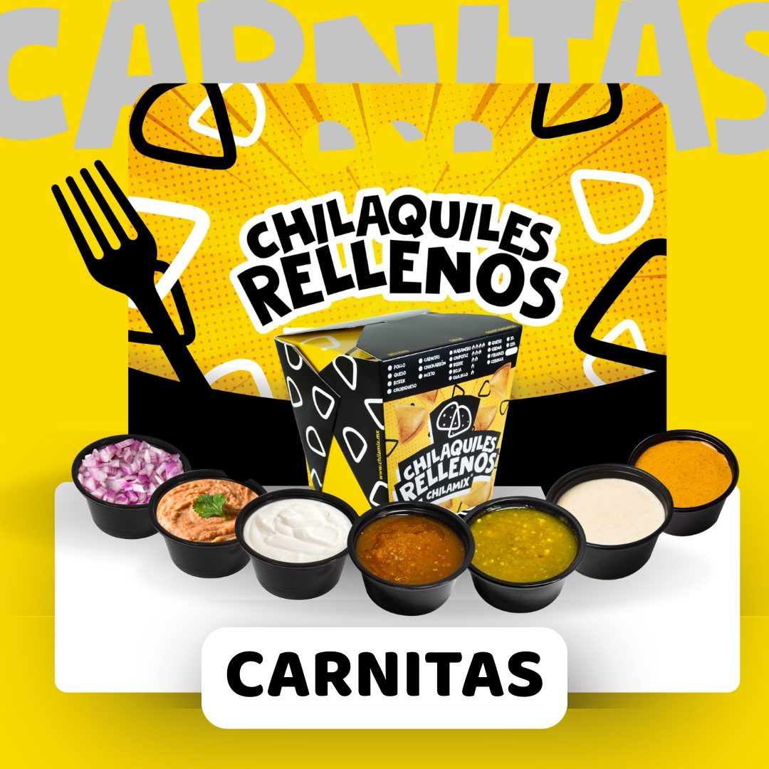 Si eres fan de las carnitas, prepárate para probarlas como nunca antes. Nuestros chilaquiles rellenos de carnitas son una locura de sabor: doraditos y crujientes por fuera, suaves y jugosos por dentro, rellenos con carnitas bien doradas y sazonadas al punto perfecto. Los bañamos con tu salsa favorita (la especialidad guajillo o las tradicionales roja, verde, habanera o chipotle).