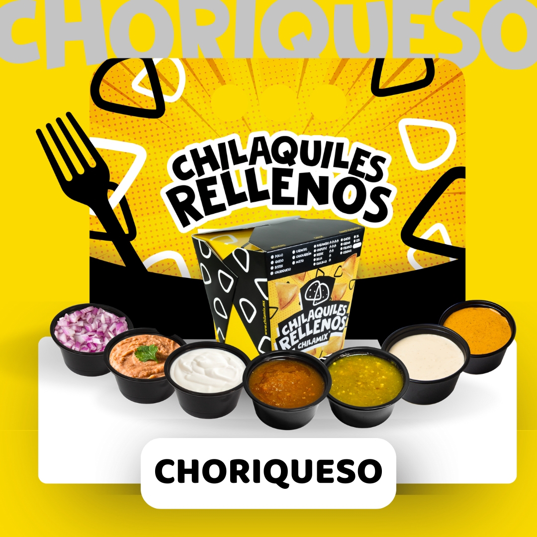 ¡Este platillo es puro antojo hecho realidad! 🤩 Nuestros chilaquiles rellenos de choriqueso combinan lo mejor del queso derretido con el sabor irresistible del chorizo bien doradito. Crujientes por fuera, cremosos y llenos de sazón por dentro, los bañamos con tu salsa favorita (roja, verde, guajillo, habanero o chipotle) y los terminamos con crema fresca, queso espolvoreado y cebolla picada.