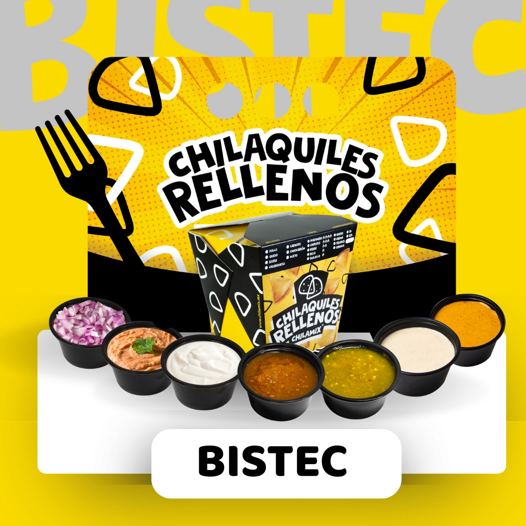 Chilaquiles Rellenos de Bistec (15 pzs.) Una combinación que lo tiene todo: chilaquiles rellenos de bistec bien sazonado, con el equilibrio perfecto entre crujiente y suculento. Bañados con tu salsa favorita (roja, verde, guajillo, chipotle o habanero) y coronados con crema, queso espolvoreado y cebolla fresca, cada bocado es una explosión de sabor. ¡Prepárate para disfrutar!