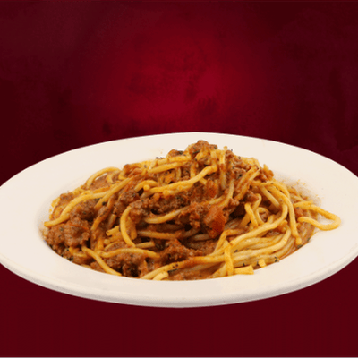 Espaguetti con la tradicional salsa a la bolognesa con carne molida y verduras en salsa de tomate sazonada.