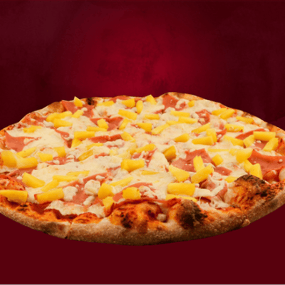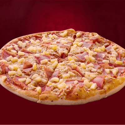 Una pizza grande con masa fina y crujiente, salsa de tomate y la combinación perfecta de jamón y piña. Elaborada con ingredientes frescos y de alta calidad para un sabor excepcional.