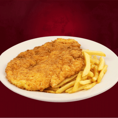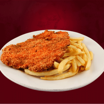 250 Gr de milanesa de pollo empanizada acompañada de papas a la francesa.