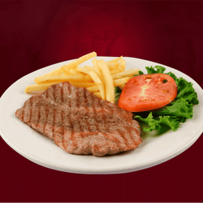 200 gr de res, jugoso y tierno, Servido con guarnición de papas fritas o ensalada.