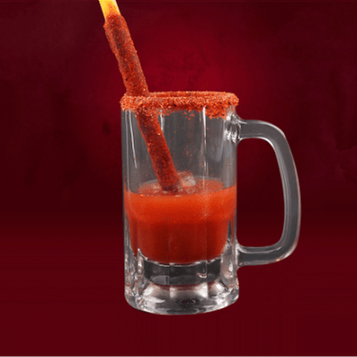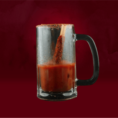 Preparado con sal, apio, jugo de limón, menage, chamoy en polvo y clamato. No incluye tarro y crveza.