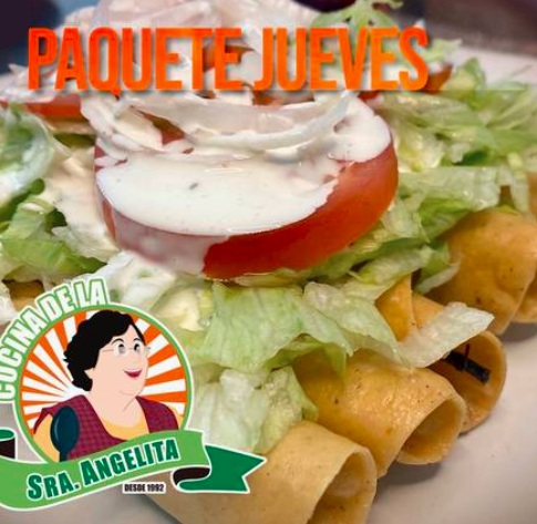 6 PIEZAS DE FLAUTAS ACOMPAÑADAS DE CREMA, SALSA Y SU VERDURA LECHUGA, JITOMATE Y CEBOLLA