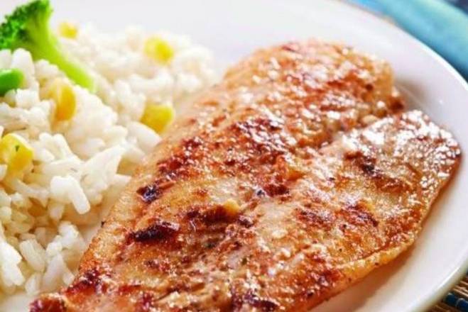 Pechuga asada a la plancha acompañada de arroz blanco y verduras mixtas. 3 Tortillas