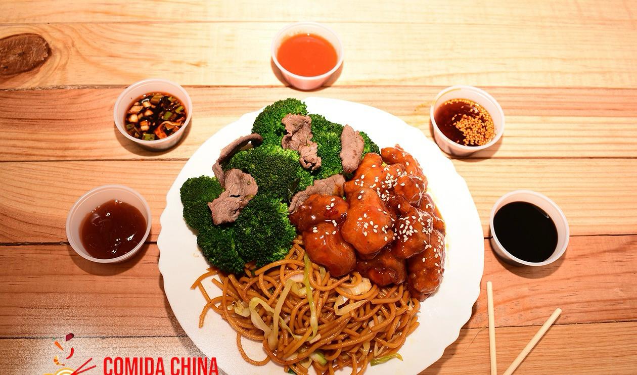 Arroz o espagueti, 2 guisados.