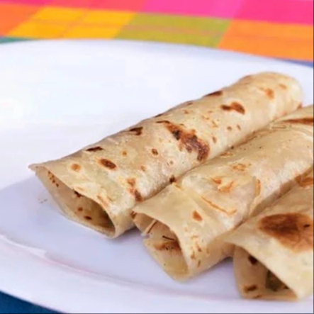 Tortilla de harina que envuelve chicharrón prensado en salsa