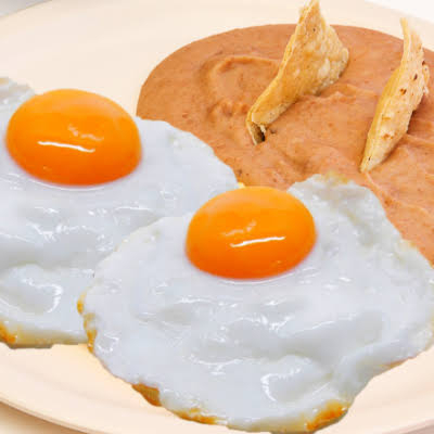 Ricos huevos estrellados con frijoles y acompañados de tortillas
